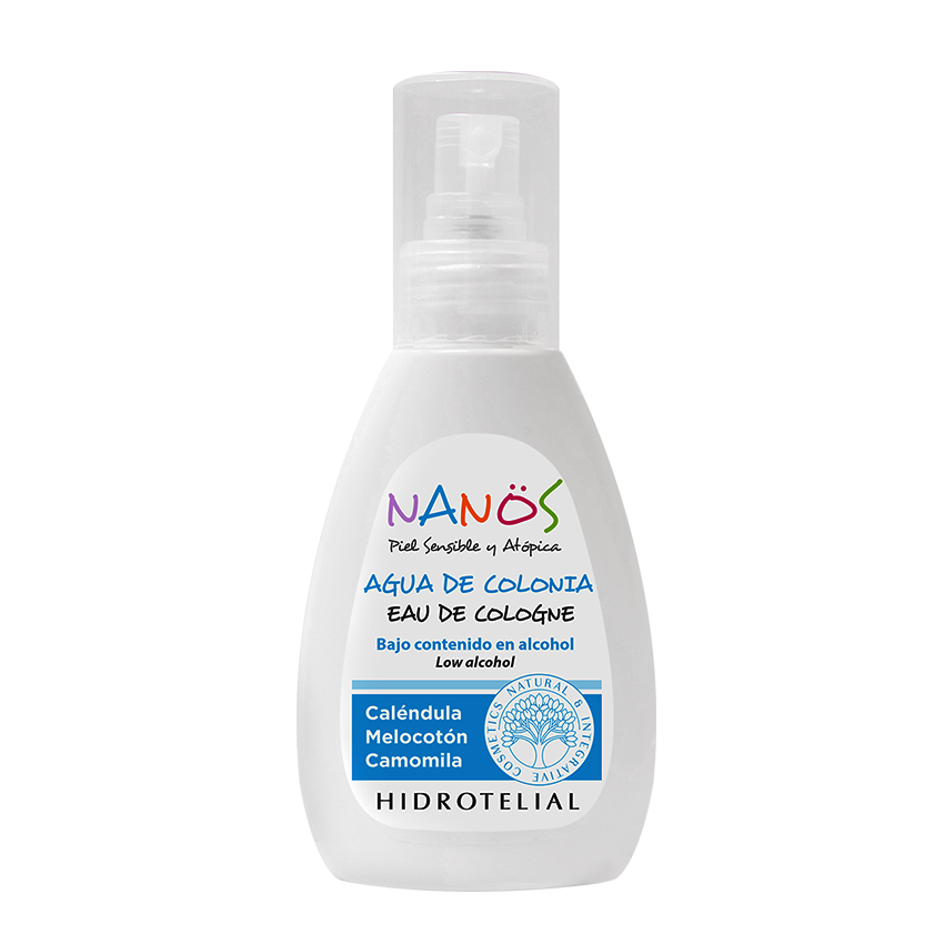 Agua de colonia con bajo contenido en alcohol y activos calmantes para perfumar suavemente la piel y ropita del bebé.